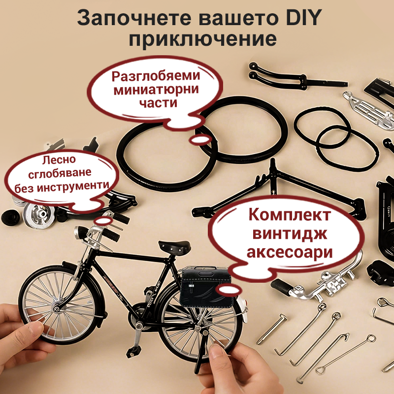 🚴 1:10 Симулационен мини DIY ретро модел велосипед Орнамент 🎁 Развийте ръчната сръчност на децата 👦🧠