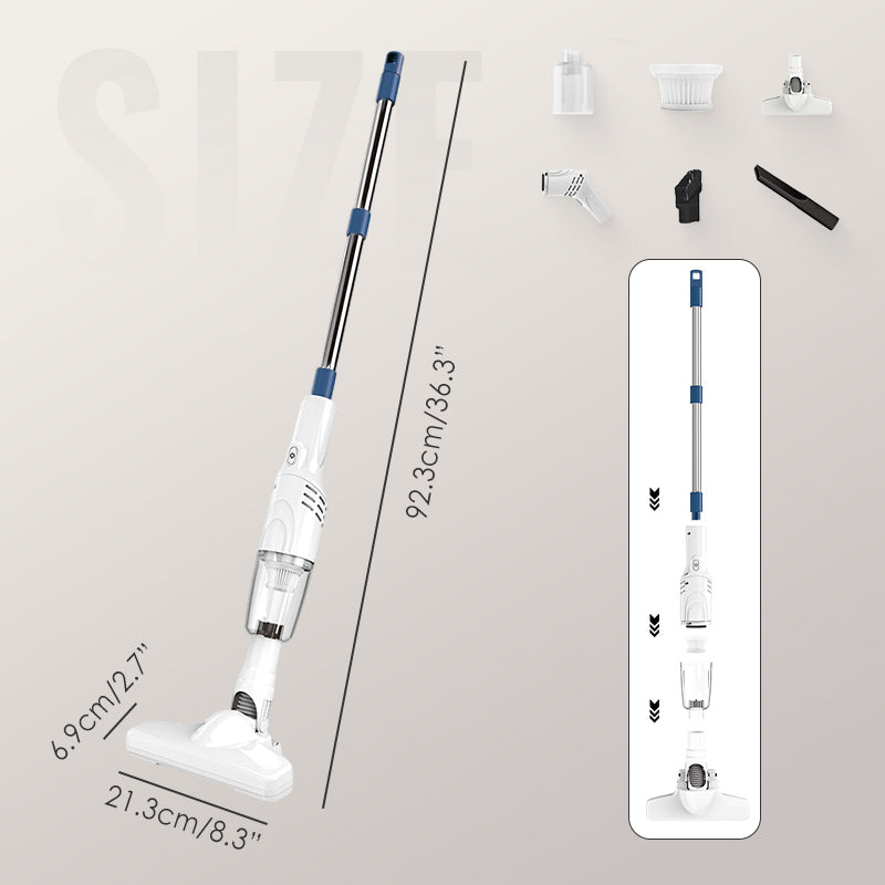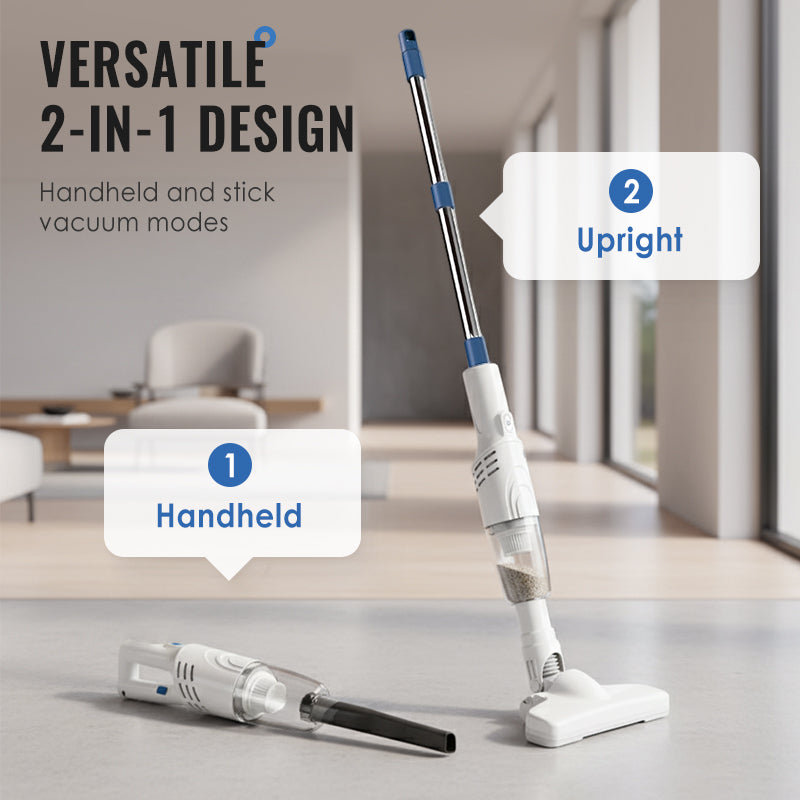 МНОГОФУНКЦИОНАЛНО 2 В 1: Моментално превключвай между компактен ръчен прахосмукачка и пълен вертикален модел. Тази адаптивност го прави идеален за почистване на подове, мебели, стълби и тесни пространства с едно устройство.