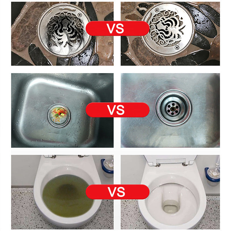 БЪРЗО РАЗТВОРЯВАНЕ И СИЛНО РАЗБЛОКИРАНЕ: Агентът бързо се разтваря при контакт с вода, разграждайки хранителни отпадъци и малки запушвания като мазнина и косми. С формулираните гранули, той прониква дълбоко, за да разруши ефективно запушванията и да възстанови гладкия воден поток в тръбите.