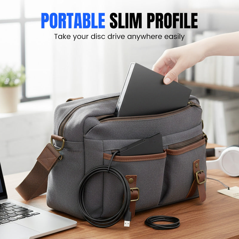 ТЪНЪК И ПОРТАТИВЕН ДИЗАЙН: Носи своя оптичен диск навсякъде лесно. Леката и компактна форма позволява удобното му поставяне в чантата за лаптоп, предоставяйки удобно решение за достъп до дискове в движение.